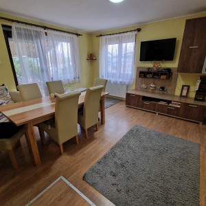 Az eladásra kínált előkertes családi ház phoroterm téglából épült, beton alapra. 2005-ben bővítés-felújítás során kialakításra került a nappali-étkező, a 3.szoba, kazánház, fedett terasz, és az előszoba beépítése. Az így elkészült családi ház modern, tágas, világos, jó elrendezésű családi otthonná vált. Új tetőszerkezetettel, új cserép héjalással egységesítették. Nyílászárói hőszigeteltek, szobák padozata laminált, vizesblokkok hidegburkolattal fedettek. Fűtése gáz,-és vegyes cirkó, ezenkívül 2db inverteles 3,5kw-os klíma is rendelkezésre áll. Az ablakok és ajtók 2rétegű hőszigetelt üvegezésűek, redőnnyel szúnyoghálóval felszereltek.