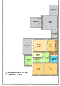 A telek nagysága 1059nm, körbehatárolt. Kis,-és tolósines nagykapuval ellátott.